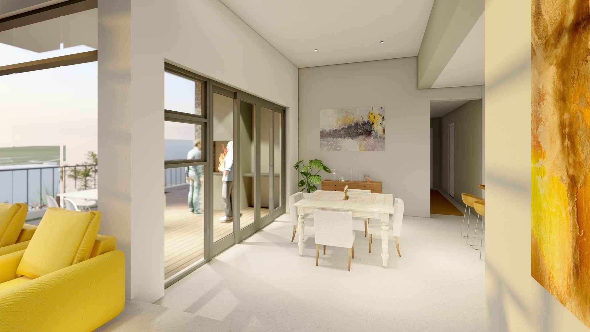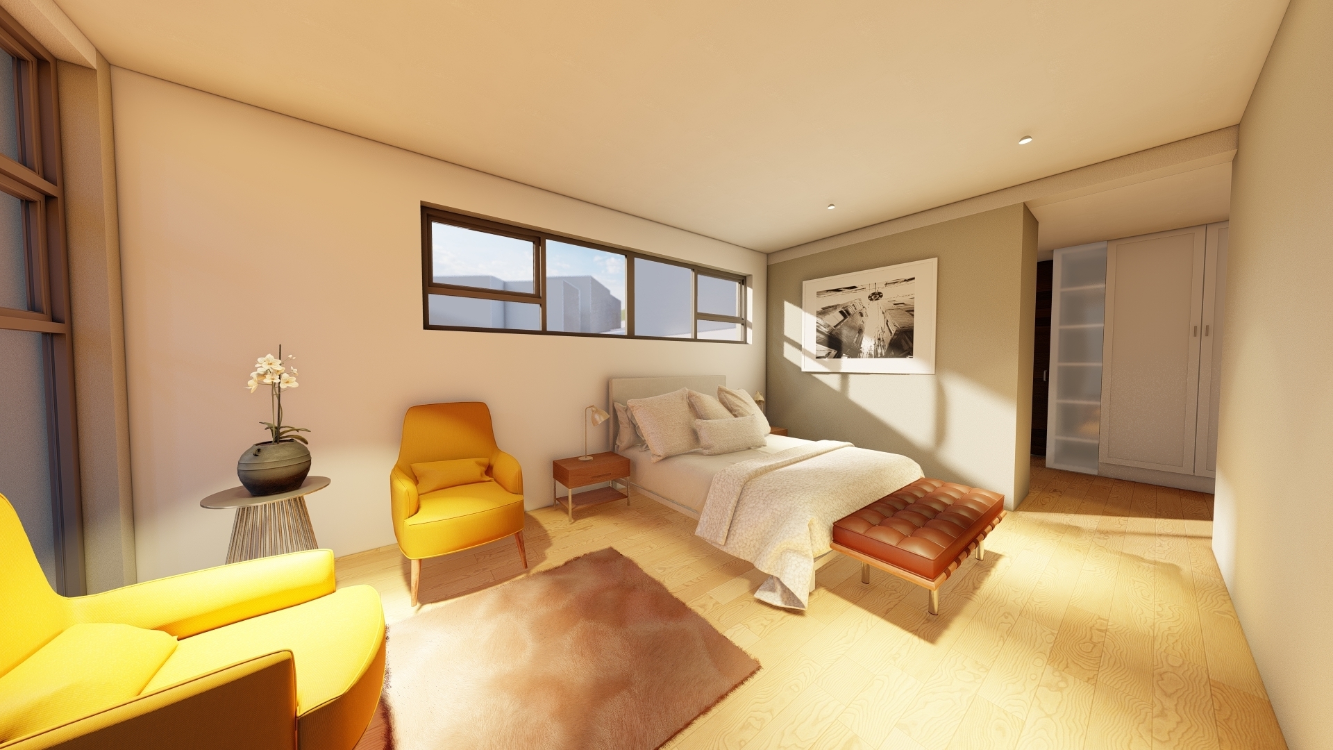 Sightlines to surrounding panoramic views of the sea and Helderberg Mountains at the North, established the leveled-out floor level in order to exploit views from the site to its fullest.