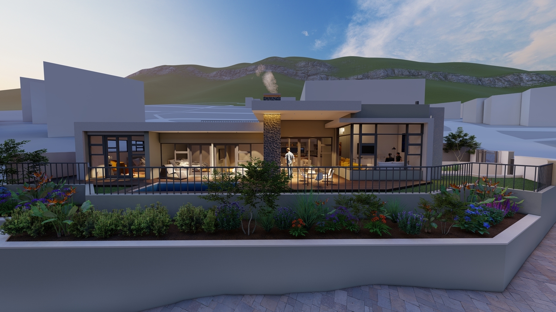 The continuous planter that wraps around the two street-facing facades does do not only enable uncompromised private spaces but also enfold and reunify the site with the natural context.
