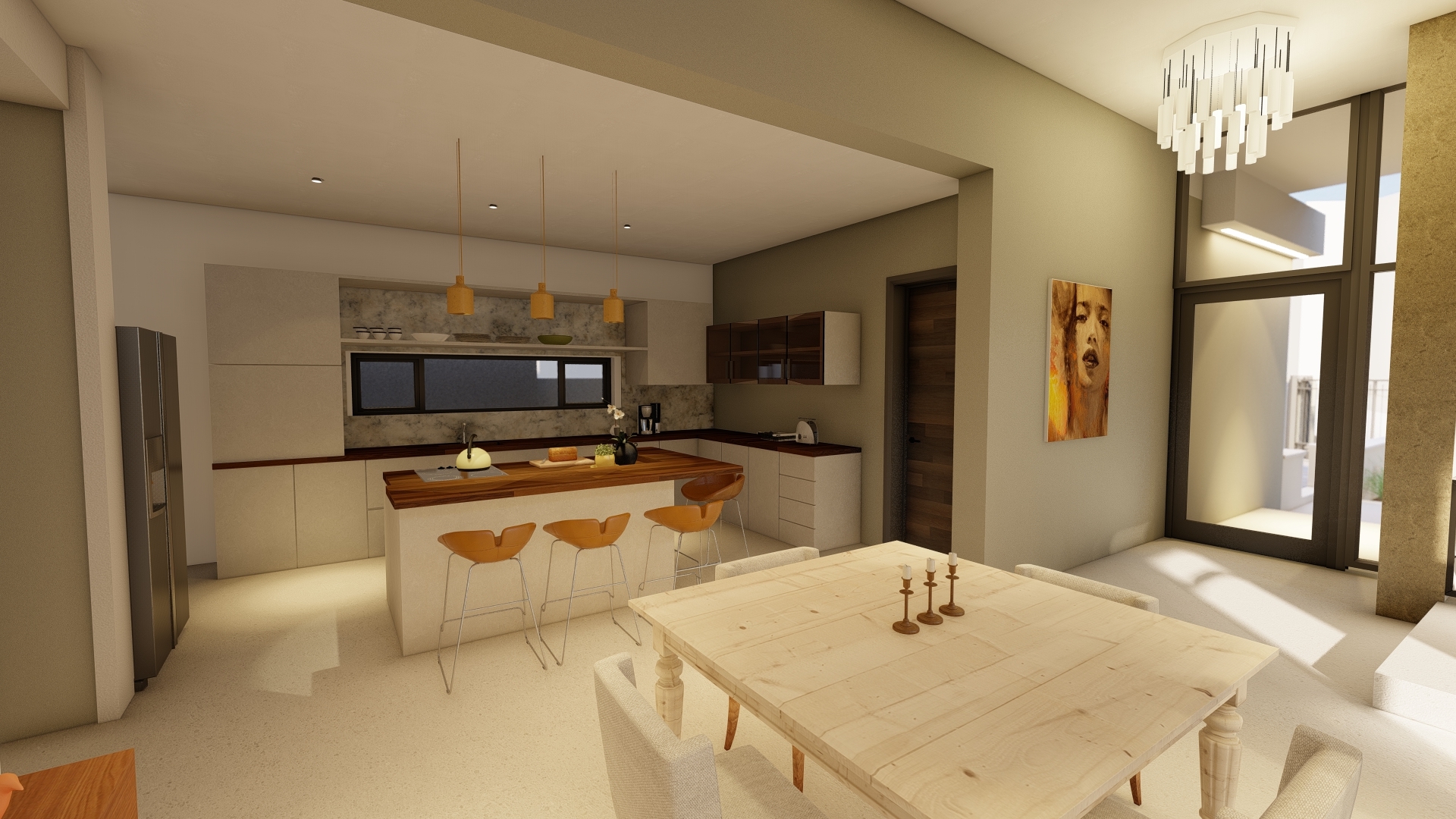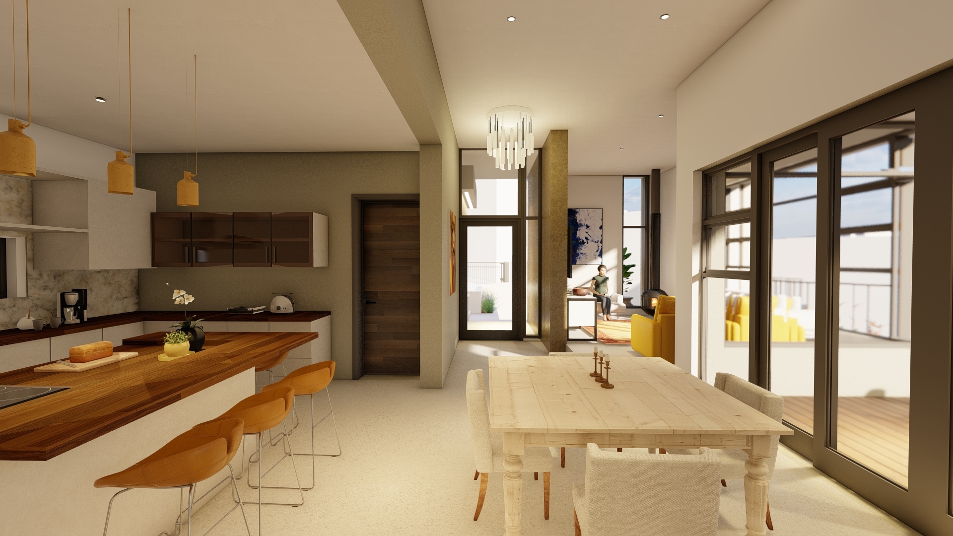 Service spaces are placed at the South. The living area and all the bedrooms are orientated to the North – featuring large openings which accentuates the play between solids and voids. The exterior entertainment area is centrally placed between these north-facing adjacent spaces to create some shelter against the famous Gordon’s Bay wind.
