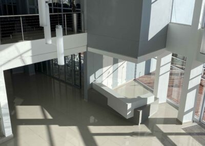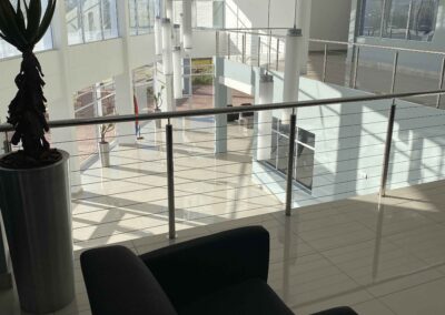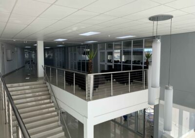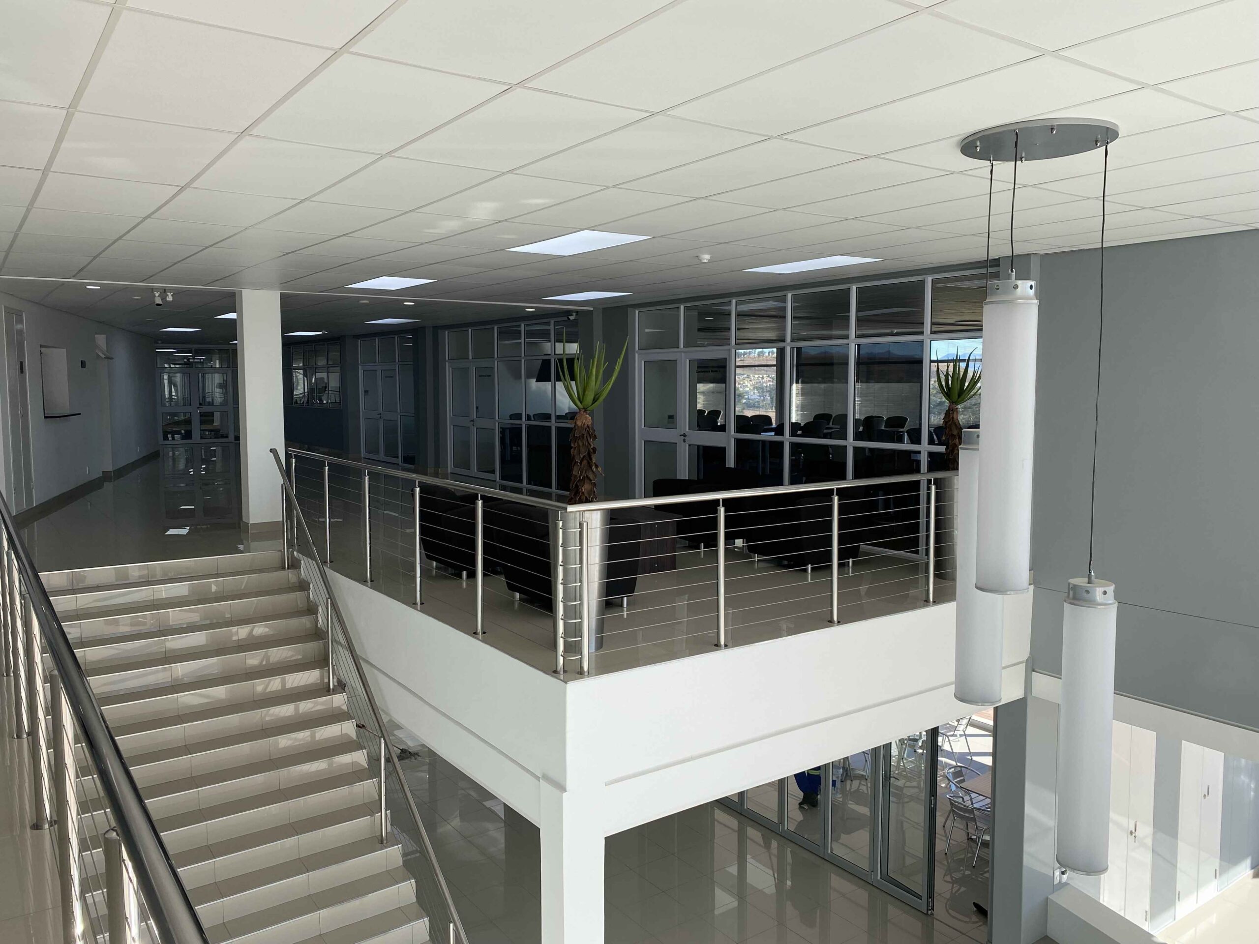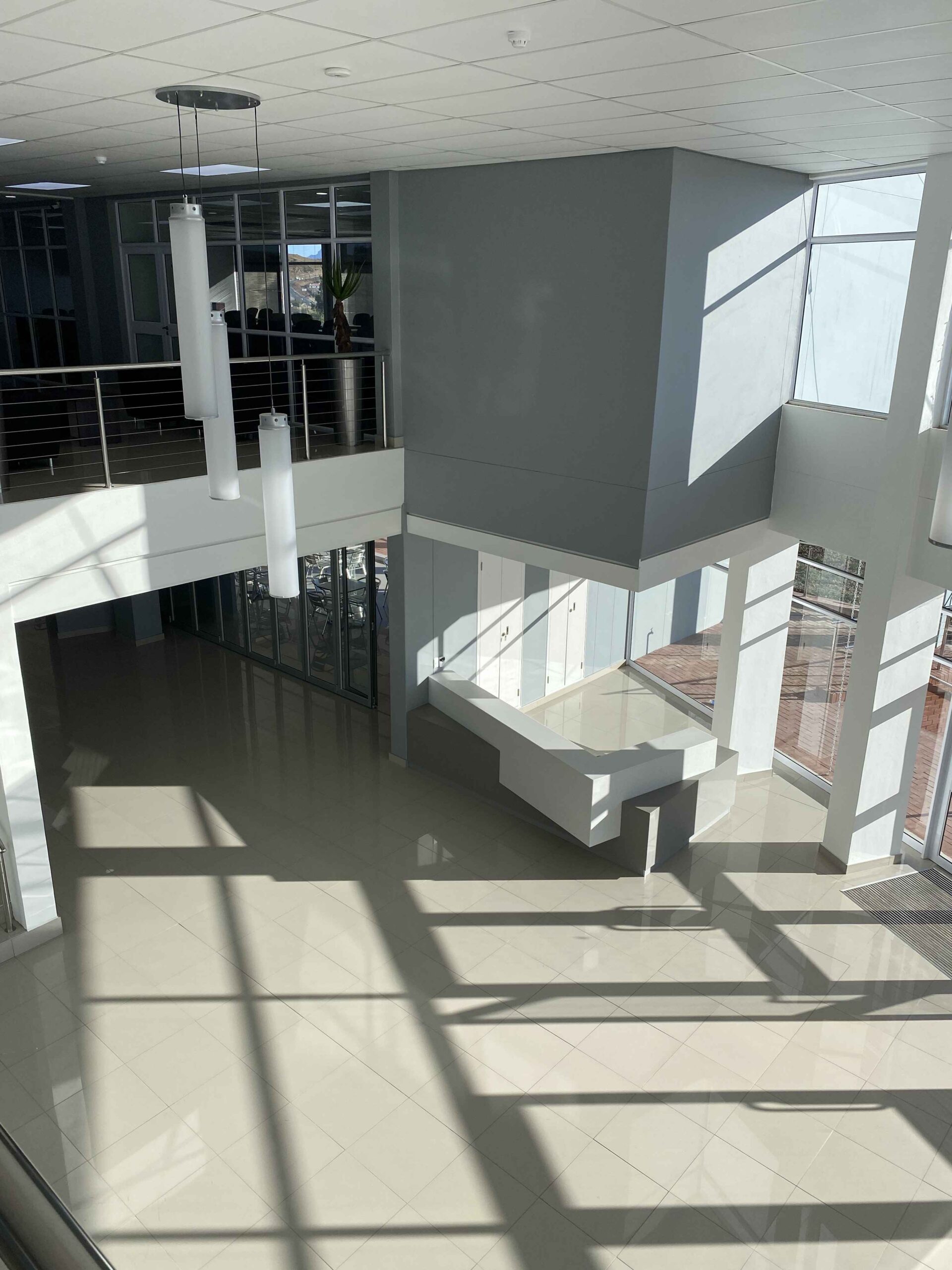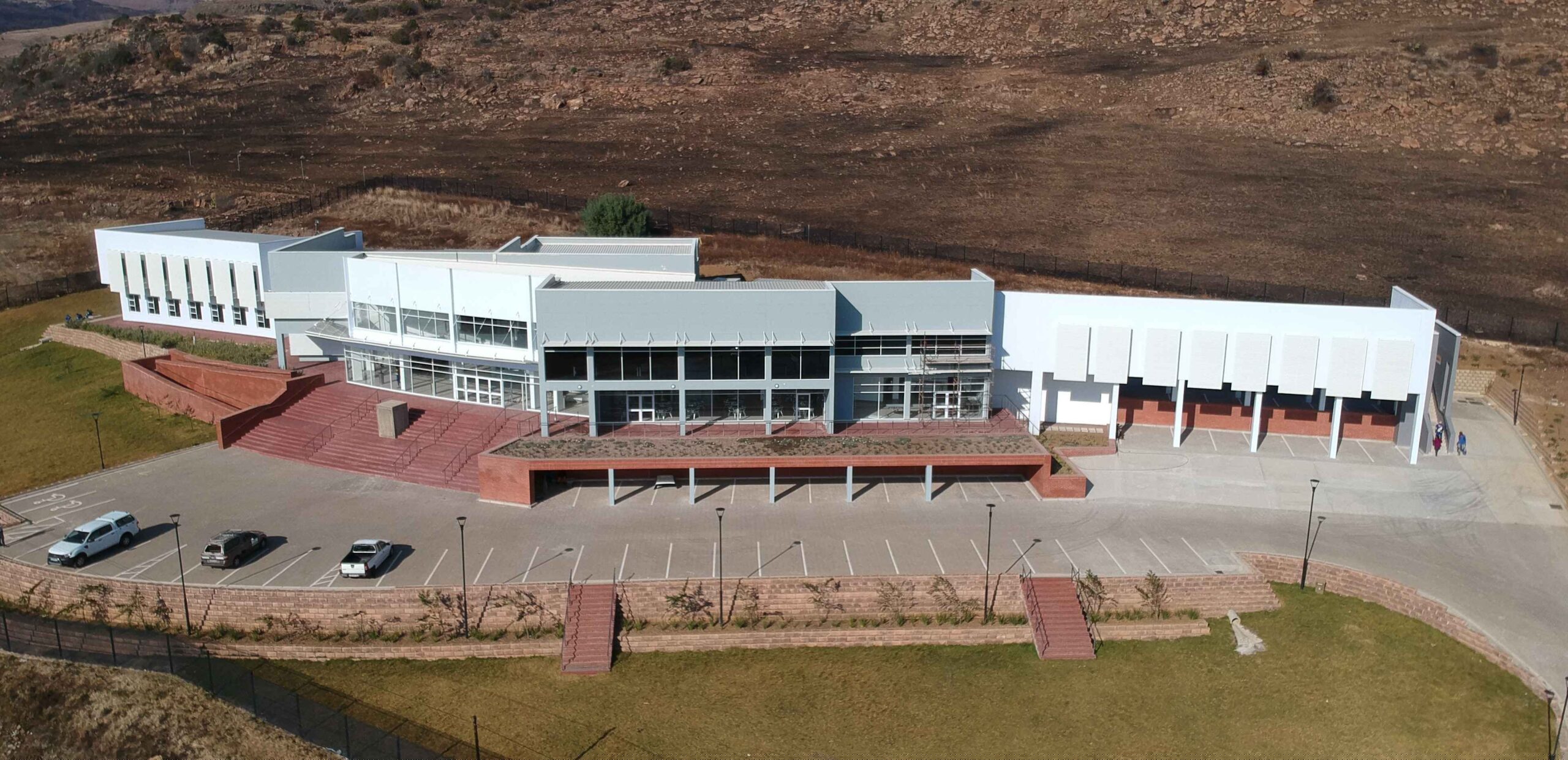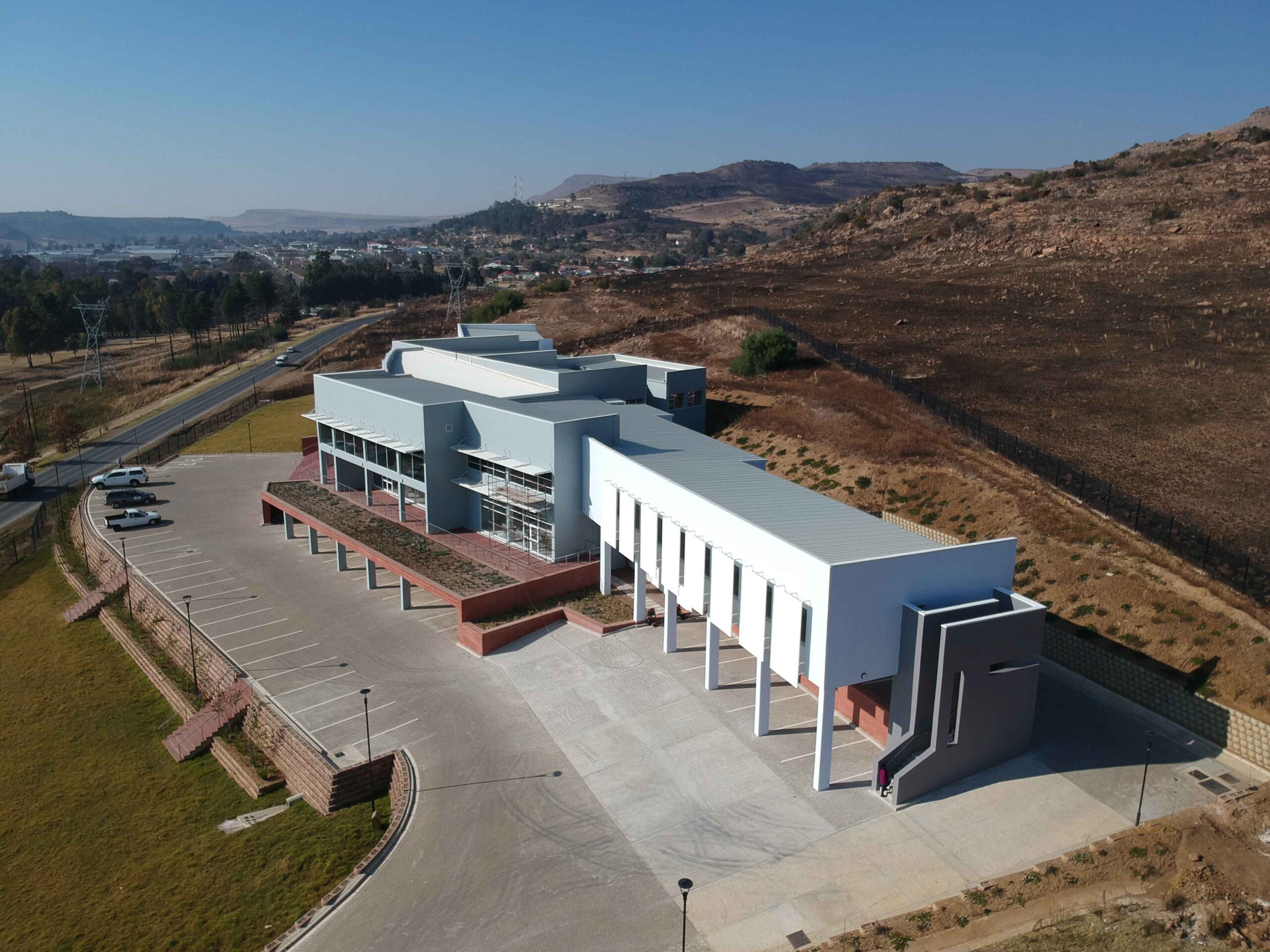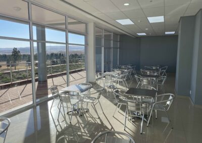 Most of the habitable rooms in the building are north facing with ancillary spaces (stores, staff kitchenettes, ablutions facilities, etc.) located on the south side. These north facing spaces offer expansive views over the local golf course and the Maluti Mountains in the distance.